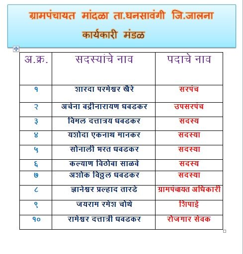 ग्रामपंचायत मांदळा ता.घनसावंगी जि.जालना कार्यकारी मंडळ व कर्मचारी